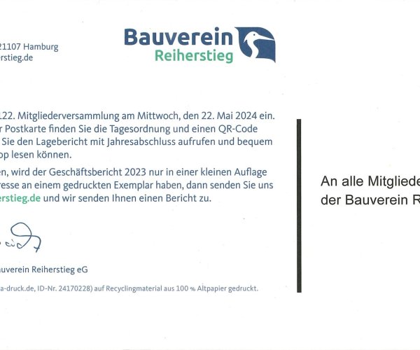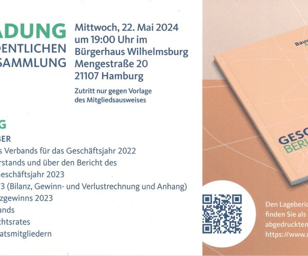 Einladung zur 122. ordentlichen Mitgliederversammlung