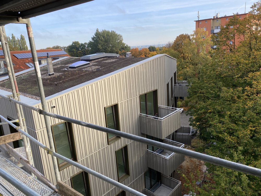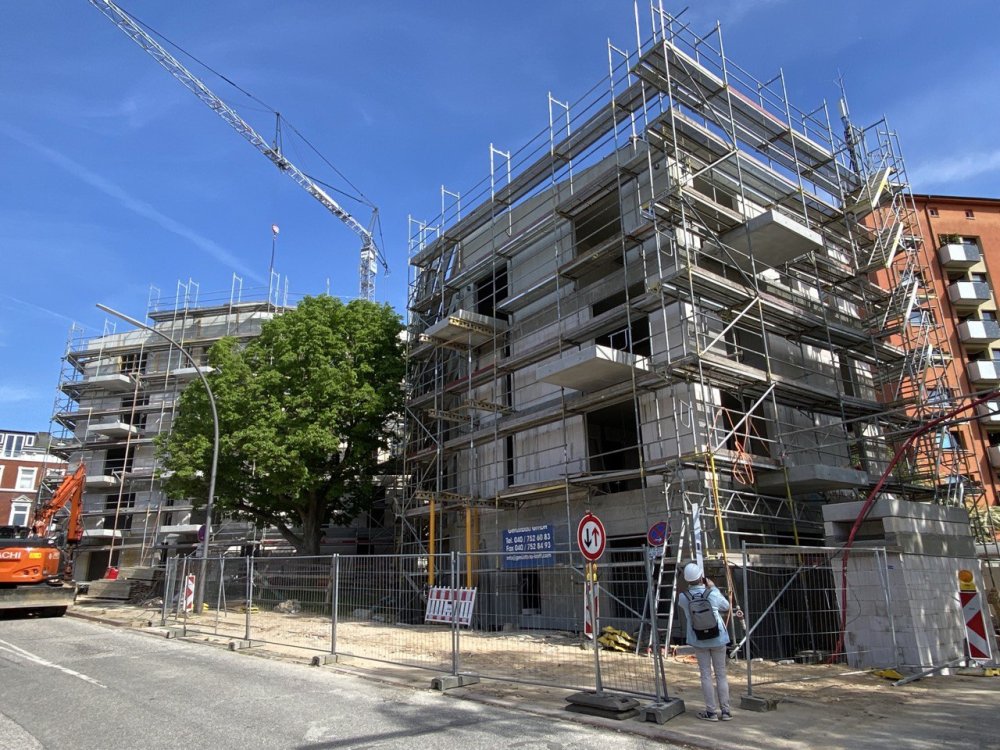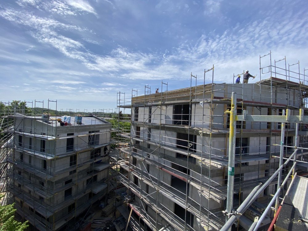Der Rohbau der drei Häuser ist fast abgeschlossen. Parallel