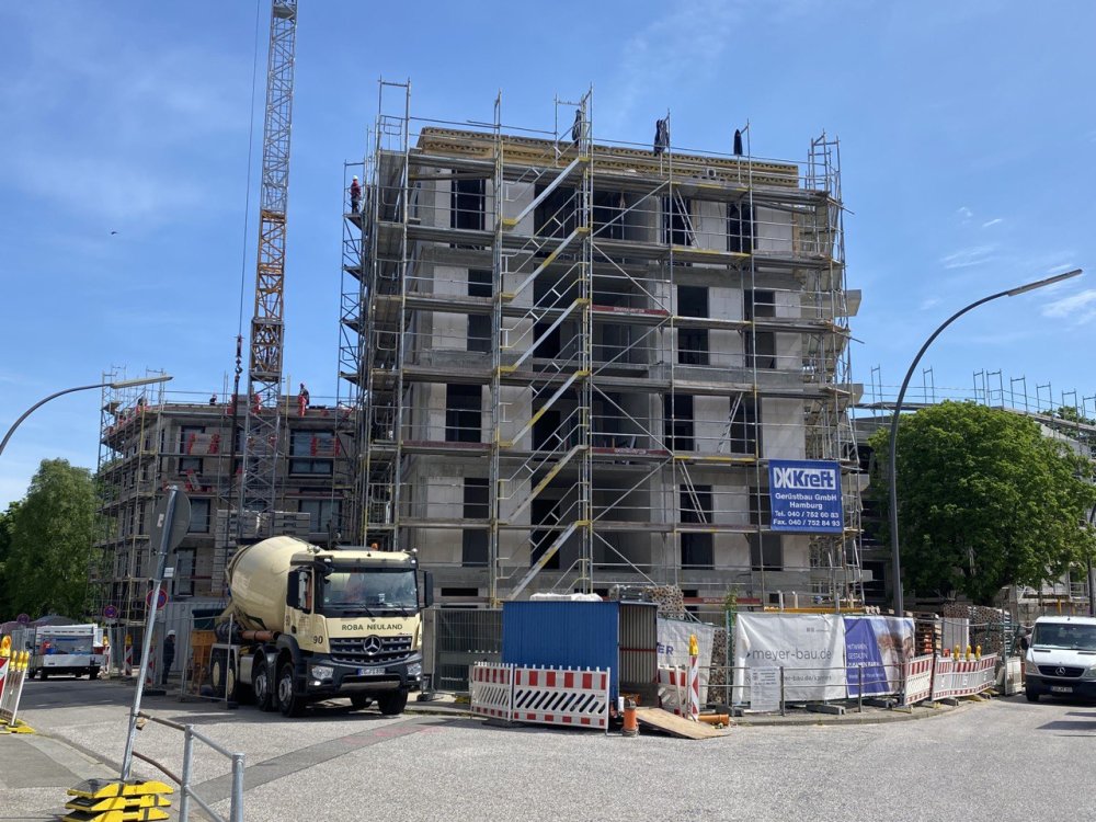 Es war das, was man einen echten Glücksgriff nennt: ein schönes Eckgrundstück in Hamburg-Harburg, für das bereits diverse Abstimmungen mit der Stadt vorlagen. Geplant hatte die Bebauung ein Immobilienbesitzer, der mehrere Anlagen in Hamburg verwaltet. Aus Altersgründen bot er im Frühjahr 2019 das Bauvorhaben inklusive Vorplanung zum Verkauf an. Unser Bauverein nutzte die Gelegenheit und erwarb das Projekt.
